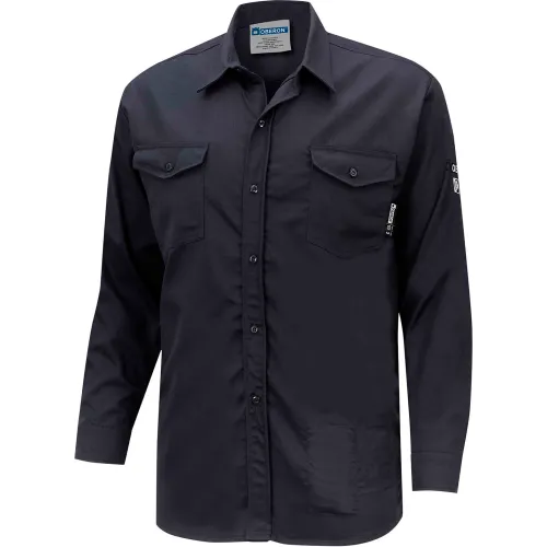 Oberon Men's Flame Resistant Button-Up Safety Shirt, Cotton/Nylon, 2XL, Navy Blue