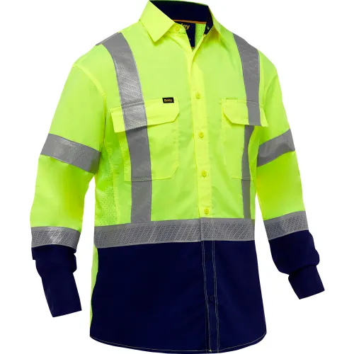 Bisley® Men's Long Sleeve Work Shirt with X-Airflow & Navy Bottom, XL, Hi-Vis Yellow
