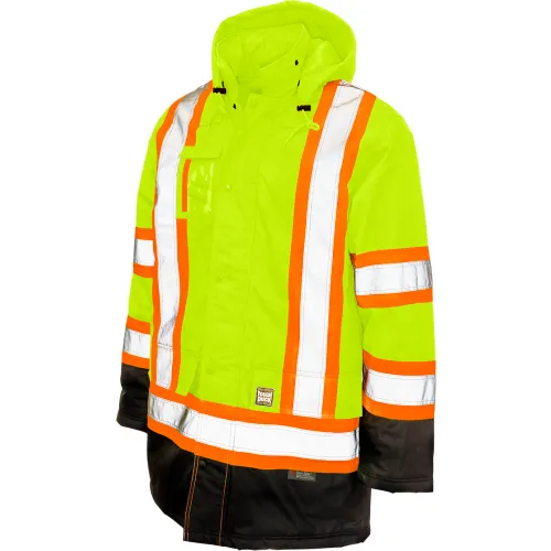 Tough Duck Men's Poly Oxford Lined Safety Parka Jacket, M, Fluorescent Green