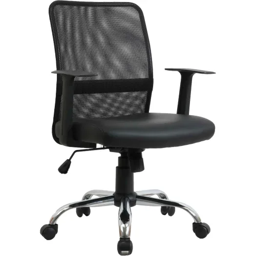 Interion® Mesh Back Leather Task Chair With Mid Back & Fixed Arms, Synthetic Leather, Black