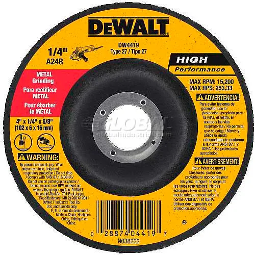 DeWalt® DW4719 Metal Grinding Wheel Type 27 7" DIA. 24 Grit Aluminum Oxide - Pkg Qty 10
