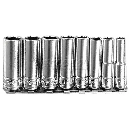 Metric Socket Set, 1/4" Drive, 6 Point, 8 Piece, Deep