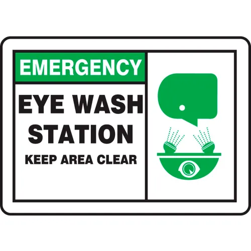 Accuform MFSD928VP Emergency Sign, Eye Wash Station Keep Area Clear (Graphic), 10"W x 7"H, Plastic