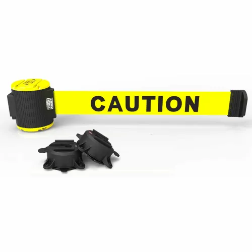 Banner Stakes Magnetic Wall Mount Barrier, 30' Yellow "Caution" Belt