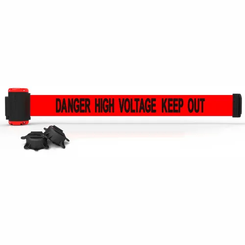 Banner Stakes Magnetic Wall Mount Barrier, 7' Red "Danger High Voltage Keep Out" Belt