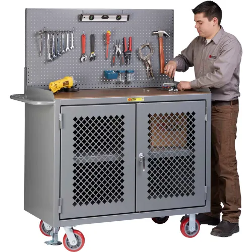 Little Giant Mobile Service Workbench w/ 1/4" Hardboard Top, Panel & Center Shelf, 48"W x 24"D, Gray