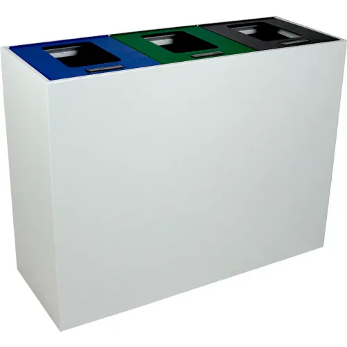 Busch Systems Summit MI Triple Recycling & Trash Can, 45 Gallon, White/Blue/Green/Black