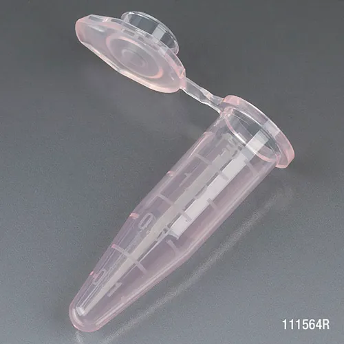 Microcentrifuge Tube, 1.5mL Polypropylene, Red, Stand-Up Zipbag, MG, 500/Pack