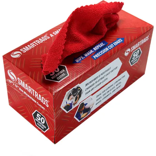 SmartRags Microfiber Cleaning Cloths, 12" x 12", Red, 50 Rags/Box, 8 Boxes/Case - M950R