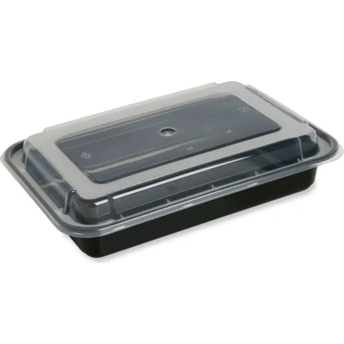 GEN Microwavable Food Container w/ Lid, 32 oz. Cap, 8-13/16"L x 6"W x 2-1/4"H, Black/Clear, 150/Case