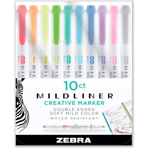 Zebra® Mildliner Double Ended Highlighter, Chisel/Bullet Tip, Assorted Colors, 10/Set