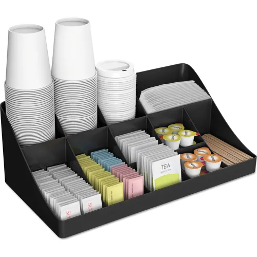 Mind Reader Coffee Condiment Organizer w/ 11 Compartments, 18-1/4"W x 6-5/8"D x 9-3/4"H, Black