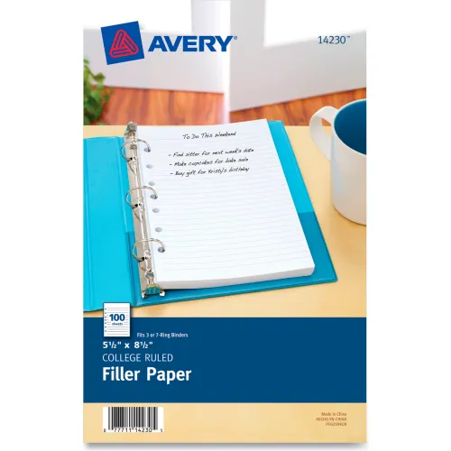 Avery® Mini Binder Filler Paper 14230, 5-1/2" x 8-1/2", White, 100 Sheets