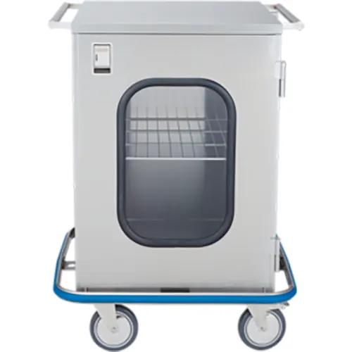 Blickman Mini Case Cart, 29 5/8"W x 40 1/2"H x 29"D, 1 S/S Wire Pullout Shelf, 1 Glass Door