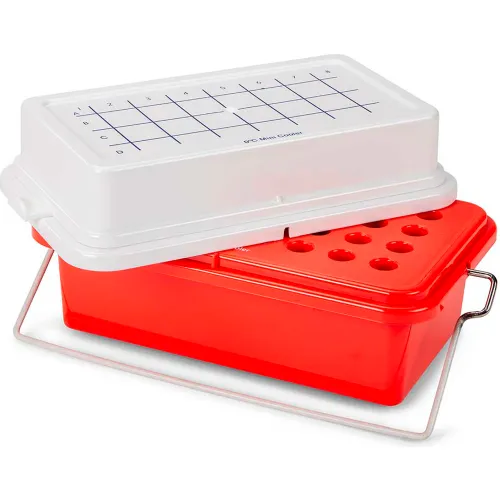 Globe Scientific Mini Cooler w/ Gel Filled Cover For 1.5 ml Tubes, 32 Place, Red