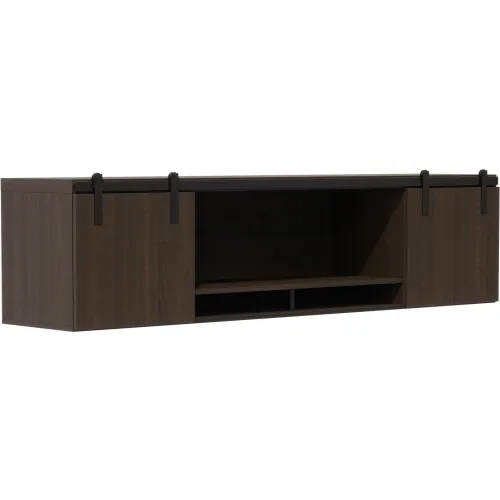 Safco® Mirella Wall Mounted Hutch with Sliding Wood Doors, 72"W x 15"D x 18"H, Southern Tobacco