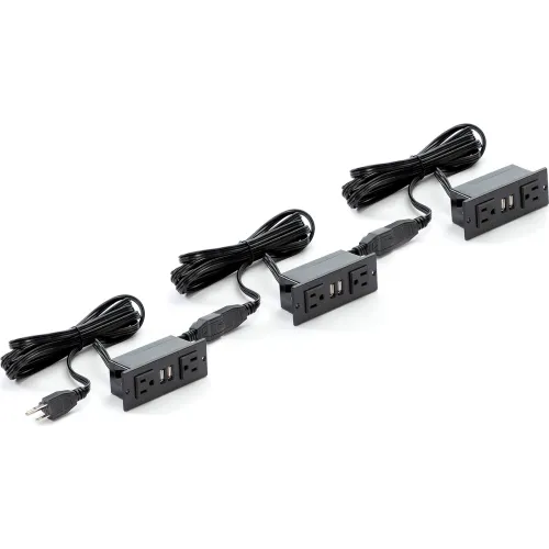 Safco® Mirella 2-Outlet Daisy Chain Power Module with 2 USB Ports, 12A, Pack of 3