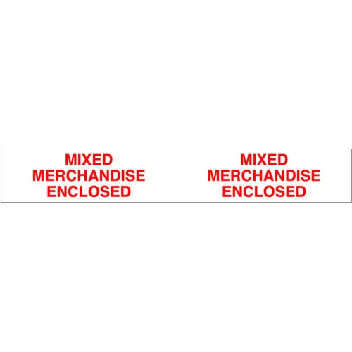 Printed Tape "Mixed Merchandise Enclosed" 2"W x 110 Yds. 1.83 Mil White/Red - Pkg Qty 36