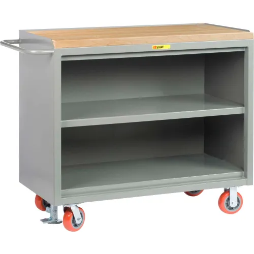 Little Giant Mobile Service Bench w/ Maple Square Edge Top & 2 Shelves, 48"W x 24"D, Gray