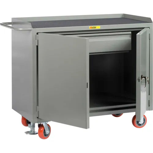 Little Giant Mobile Service Bench w/ Steel Square Edge Top & 2 Doors, 48"W x 24"D, Gray
