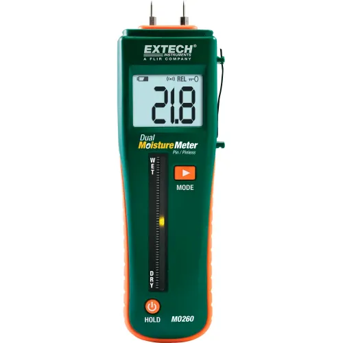 Extech MO260 Combination Pin/Pinless Moisture Meter, Reachargeable, 0.44"L