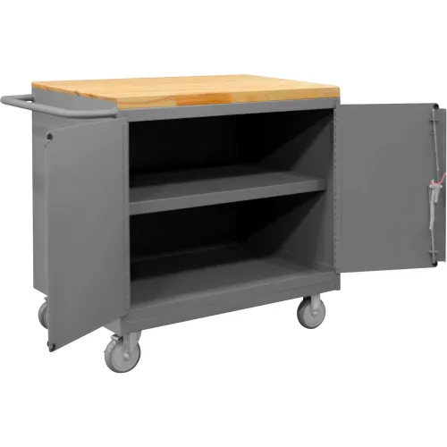 Durham Mfg. Mobile Bench Cabinet, 2 Doors, 1 Shelf, 42-1/8"W x 25-13/16"D, Gray
