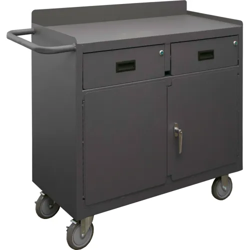Durham Mfg.® Mobile Bench Cabinet w/ Steel Top, 2 Shelves, 2 Drawers, 42-1/8"W x 18-1/4"D, Gray