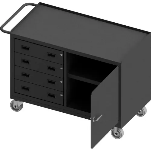 Durham Mfg. Mobile Bench WorkStation, Locking Door, 4 Drawers, 54-1/8"W x 24-1/4"D