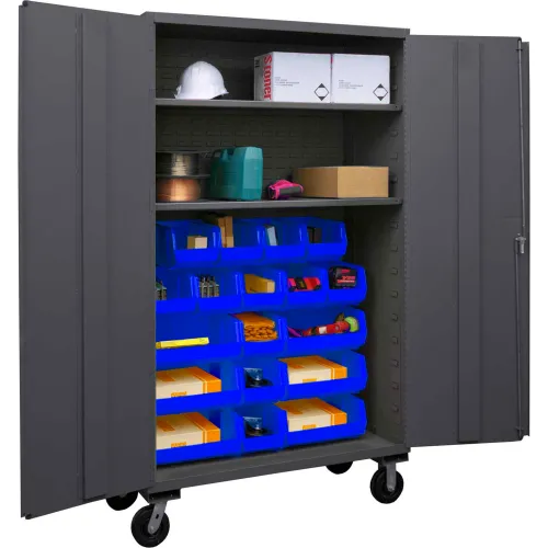 Durham Mobile Bin Cabinet 3502M-BLP-18-2S-5295 - 18 Blue Bins 48"W x 24"D x 80"H