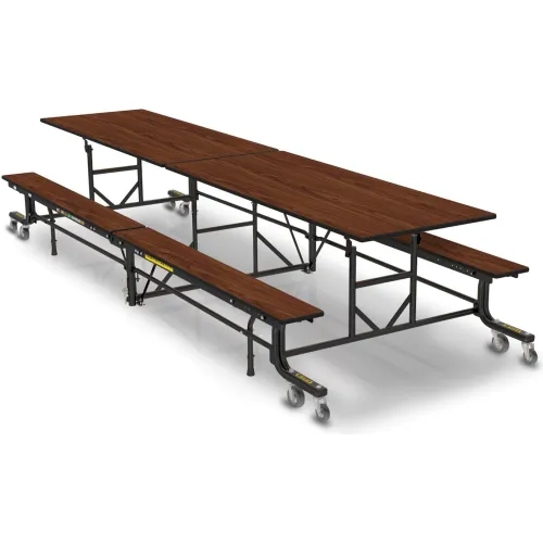 Global Industrial Mobile Cafeteria Table with Fixed Benches, 12'L x 27"H, Montana Walnut