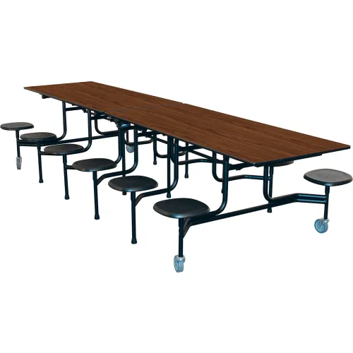 Global Industrial Mobile Cafeteria Table with Stools, 12'L x 29"H, Montana Walnut