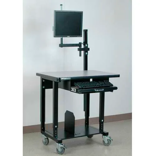Stackbin Mobile Computer Station with Monitor Arm, 36"W x 24"D x 33-1/2"H, Blue