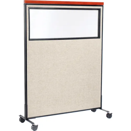 Interion® Mobile Deluxe Office Partition Panel with Partial Window, 48-1/4"W x 64-1/2"H, Tan