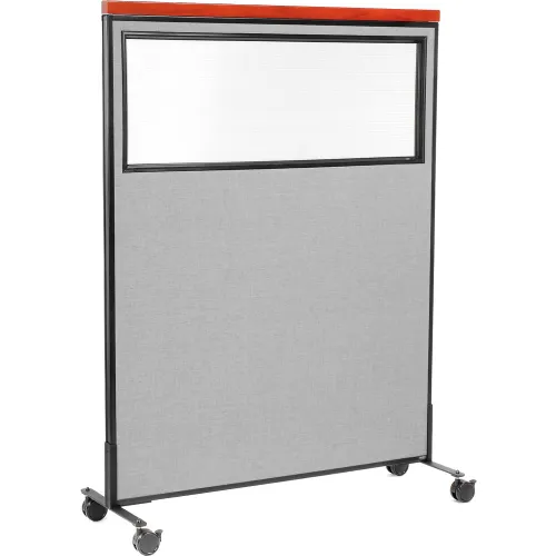 Interion® Mobile Deluxe Office Partition Panel with Partial Window, 48-1/4"W x 64-1/2"H, Gray