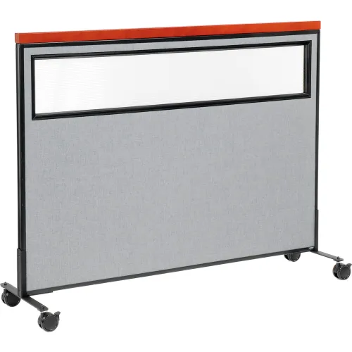 Interion® Mobile Deluxe Office Partition Panel with Partial Window, 60-1/4"W x 46-1/2"H, Gray