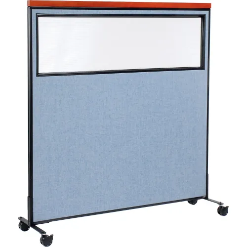 Interion® Mobile Deluxe Office Partition Panel with Partial Window, 60-1/4"W x 64-1/2"H, Blue