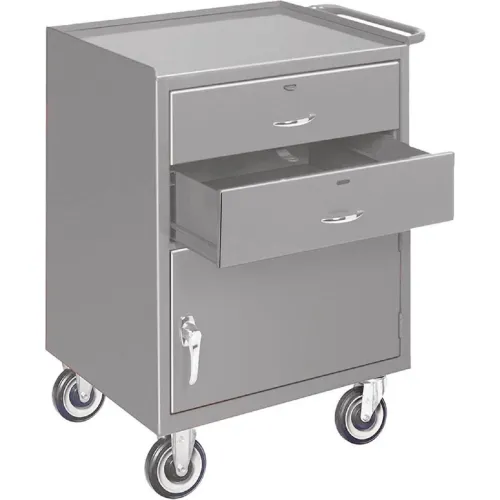 Global Industrial Mobile Drawer Bench W/ Cabinet & 2 Drawers, 24"W x 20"D, Gray