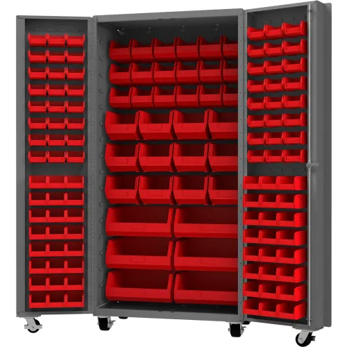 Durham Mfg.® Mobile Heavy Duty Cabinet w/ 132 Red Bins, 14 Gauge, 36"W x 24"D x 76"H