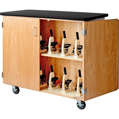 Diversified Spaces Mobile Science Microscope Storage Cabinet - Oak with Black Top