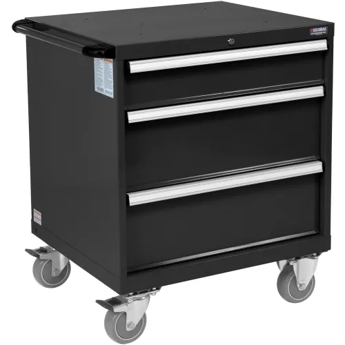 Global Industrial Mobile Modular Drawer Cabinet, 3 Drawers, w/Lock, 30"Wx27"Dx37"H, Black