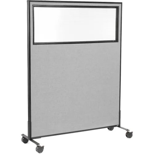 Interion® Mobile Office Partition Panel with Partial Window, 48-1/4"W x 63"H, Gray