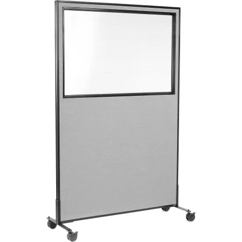 Interion® Mobile Office Partition Panel with Partial Window, 48-1/4"W x 75"H, Gray