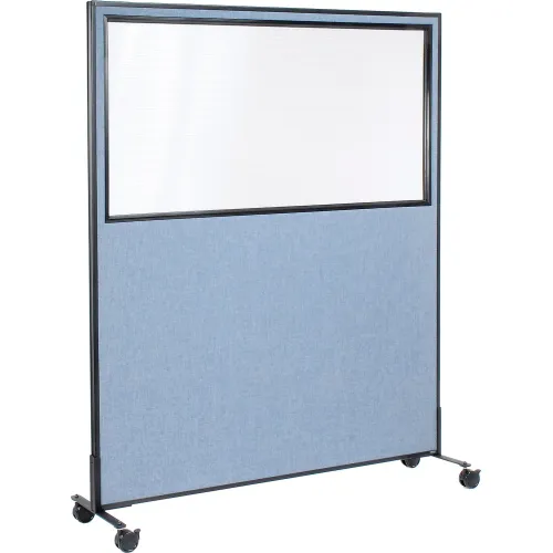 Interion® Mobile Office Partition Panel with Partial Window, 60-1/4"W x 75"H, Blue