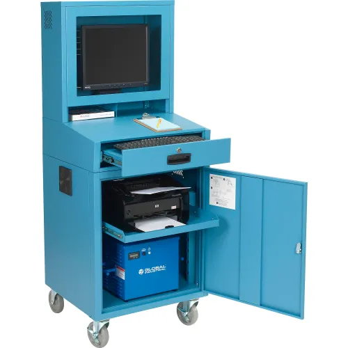 Global Industrial Mobile Powered LCD Computer Cabinet, 560Wh Battery, Blue, Unassembled