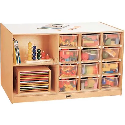 Jonti-Craft® Mobile Storage Island, Twin w/Clear Trays, 48"W x 29"D x 29-1/2"H, Birch Plywood