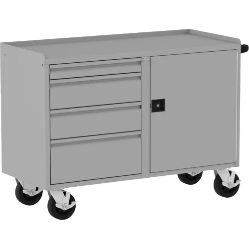 Valley Craft® Mobile Workbench with 4 Drawers & 1 Door, 52"W x 21"D, Silver/Black
