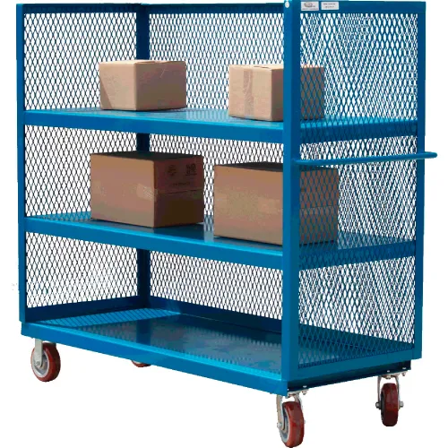 3 Sided Steel Mesh Service Truck w/1 Shelf, 2400 lb. Capacity, 48"L x 24"W x 57"H