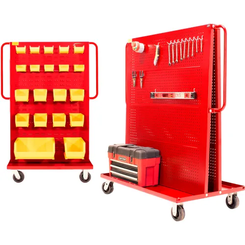 Valley Craft Modular A-Frame Bin Cart w/ 1 Louvered & 1 Round-Peg Pegboard, 46"W x 30"D x 62"H, Red