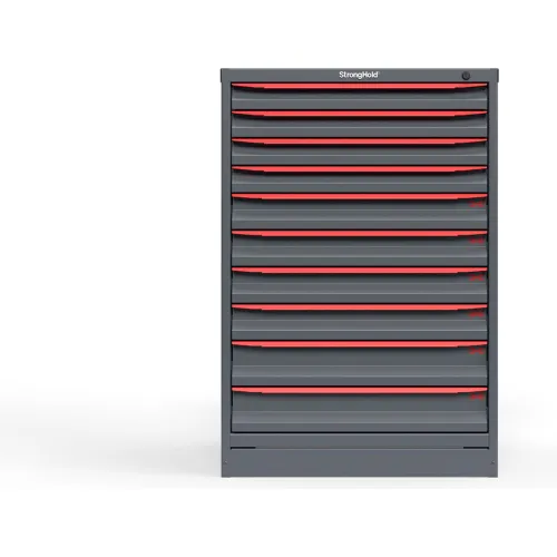 Strong Hold Modular Drawer Cabinet, 10 Drawers, 140 Compart, 30"W x 29"D x 44"H, Red Handle/Gray