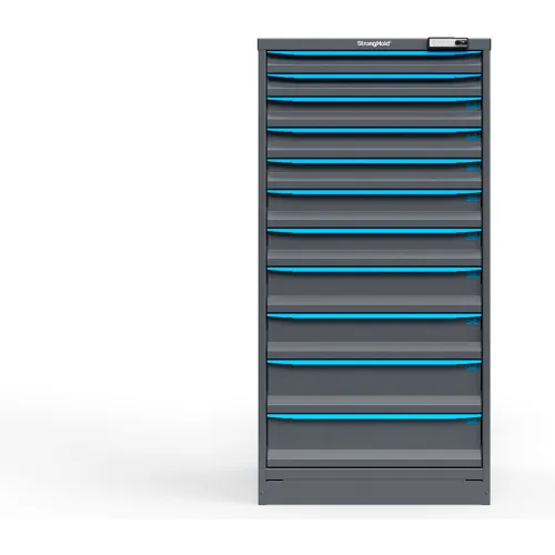 Strong Hold Modular Drawer Cabinet, 11 Drawers, 171 Comp., 30"Wx29"Dx60"H, Blue /Gray, Elec. Lock